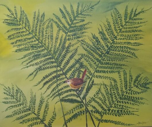 wren on ferns